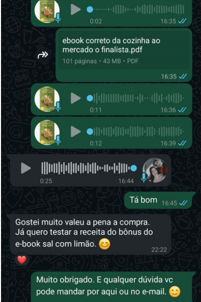 Após a confirmação do seu pagamento, o acesso ao e-book completo será enviado imediatamente para o seu e-mail. Os bônus exclusivos (e-book de Fornecedores de Confiança + Receita Secreta de Sal com Limão) serão enviados para o mesmo e-mail 7 dias após a confirmação da sua compra.